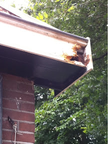 Vandaag begonnen aan noodzakelijk schilderwerk. Na 5 minuten was het al mis: Else prikte dwars door het hout. Het zink in goot is verkeerd aangebracht dus nu moet er eerst getimmerd worden.